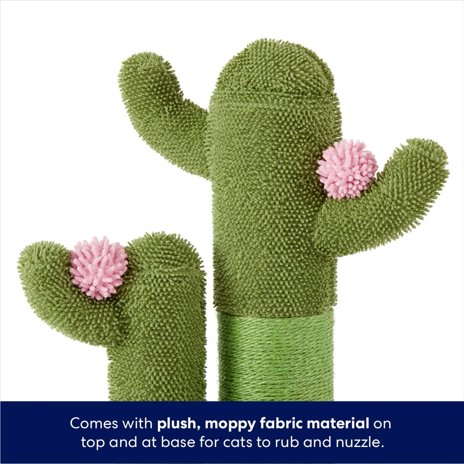 - Plush, moppy fabric material on top and base for cats to rub and nuzzle.