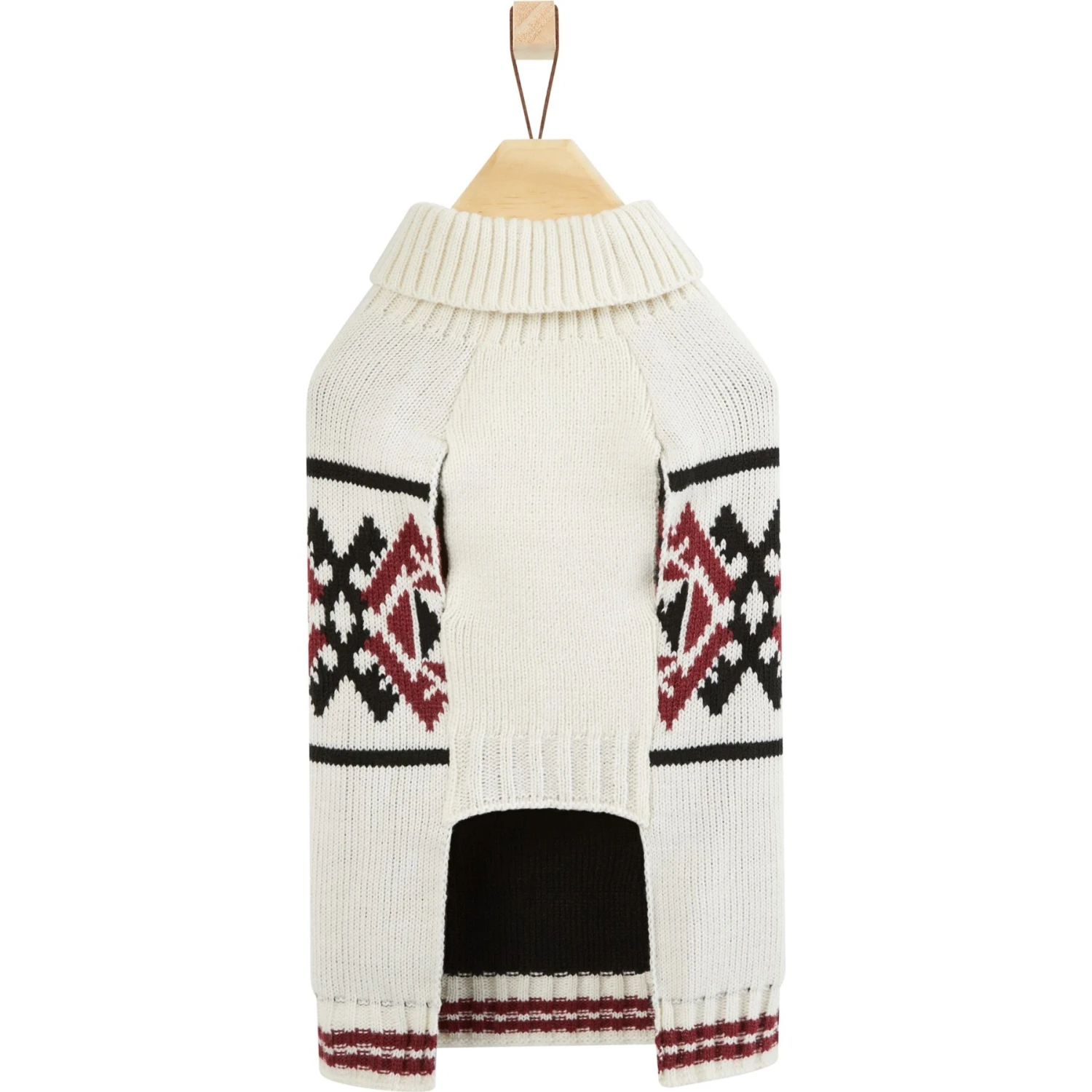 - From Frisco by Chewy. This geometric-pattern sweater is the proper, stylish option your furry friend needs for the cold weather season.