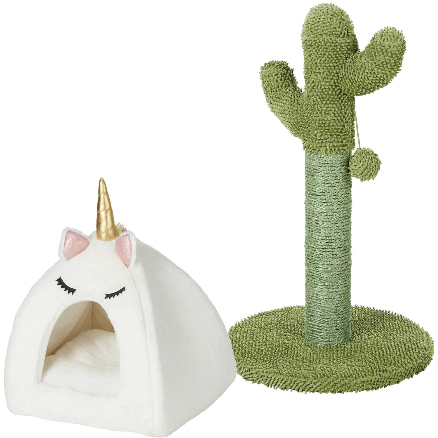 Frisco Novelty Unicorn Covered Cat & Dog Bed & Frisco Cactus Cat Scratching Post