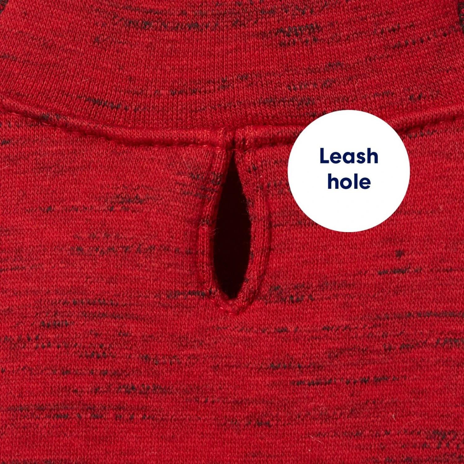 - Step up your pet’s winter wardrobe with this sporty hooded sweater.