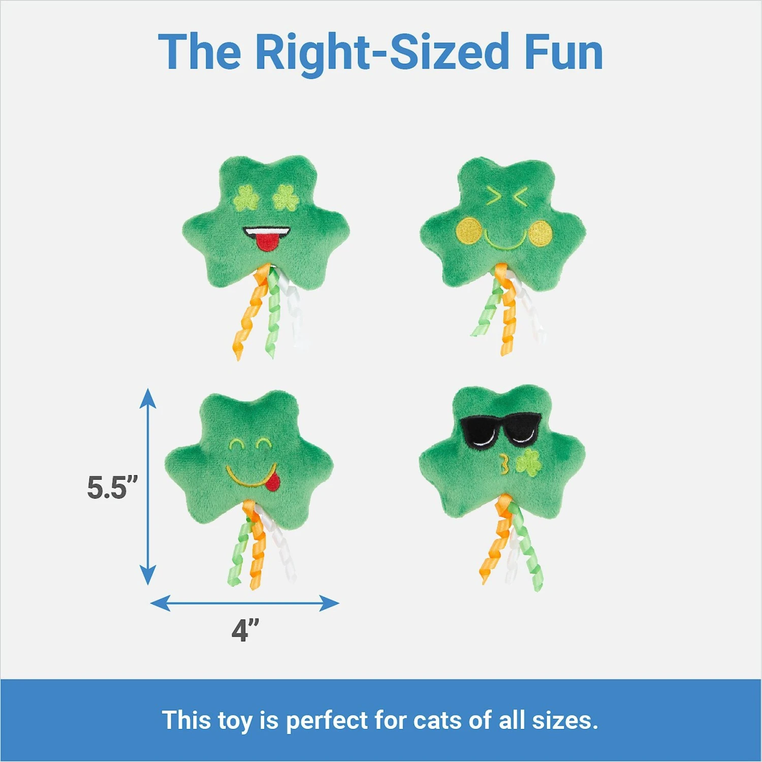 - Shamrock plush toy set comes with four individual toys for your cat.