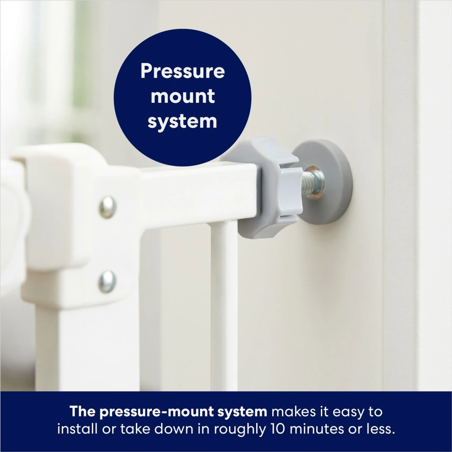 - Assembly requires just a screwdriver or a drill and a pencil for effortless setup and take down—the pressure-mount system makes it easy to install in about 10 minutes and take it down even faster.